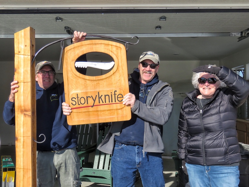 We want every woman who spends time at Storyknife to know that she and her work are valued, and we want her to feel that from the first time she comes up the drive. So, we commissioned a sign from Dave and Dan Gerard. I talked with them about what we wanted in terms of structure, but those guys have been such an integral part of building Storyknife from the very beginning (remember the AMAZING dining table they made?) that they pretty much came up with the design on their own. And now it’s a reality.