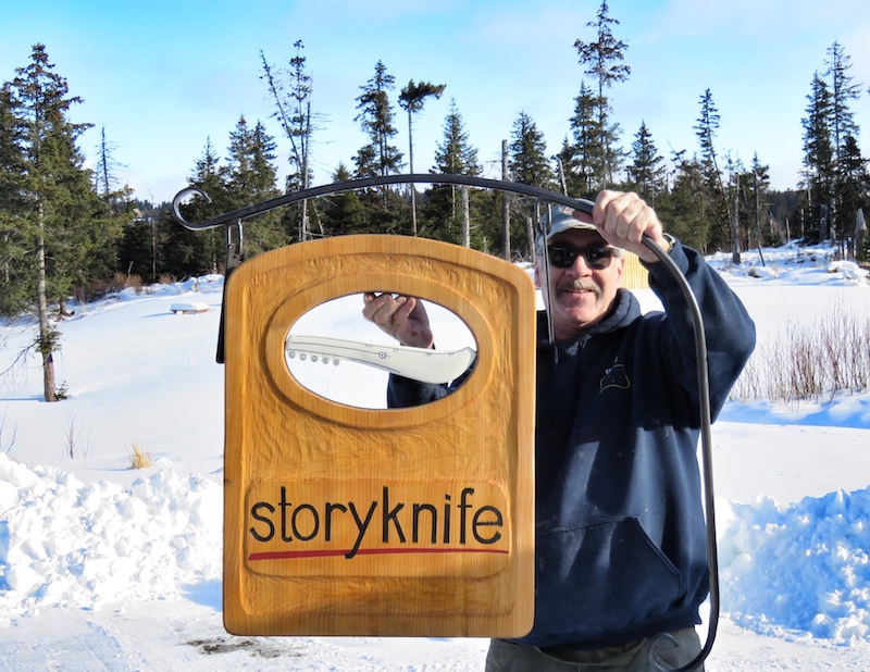 One of the things that I cherish about Storyknife is how much love and attention is put into each part of the experience. Maura plans menus. I plan flowers and gardening and look to dietary needs and allergies and scheduling. On the walls, art by Alaskan women artists that complements each cabin and Eva’s House. Custom quilts, beautiful handmade pottery by Homer women potters…. and now Storyknife’s new sign.