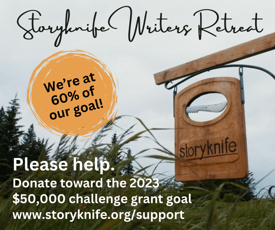 We are still asking that you include the women writers of Storyknife in your year-end giving. We’re at 60% of our $50,000 challenge grant goal. Thank you so much to the amazing donors who’ve been so generous! Please remember that your support goes directly to fostering the women writers of Storyknife, giving them the time and the space to devote to their writing. This is a revolutionary gift which will lead to more diverse stories in the world.