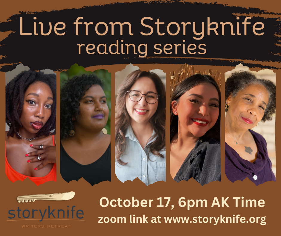 Join us on Thursday, October 17 at 6pm Alaska time for Live from Storyknife featuring September’s writers in residence. The session will be live on Zoom and the recording will be posted on this page after the reading.