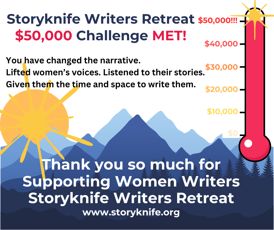 Here at the end of calendar year 2024, we greet you from a threshold. One season ends, and we look ahead to another beginning. The New Year tradition of making resolutions is an expression of hope. At Storyknife, we prefer value clarification. When the Storyknife Board and solitary staff member (me) got together in 2018 to write a strategic plan, we identified cultural impact, validation, support, and openness as our core values. As we move into a new year, please know that we will always be making decisions that reflect those values as we provide women writers the time and space to devote to their craft.