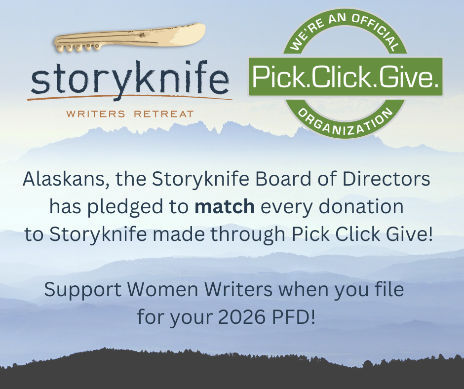 This morning I woke up to the aurora borealis in the morning sky. It was a stunning show, green, white, and red curtains billowing over the stars. It made me grateful to live in Alaska and to be able to share this place with so many women writers. And grateful to all of the people who support Storyknife.