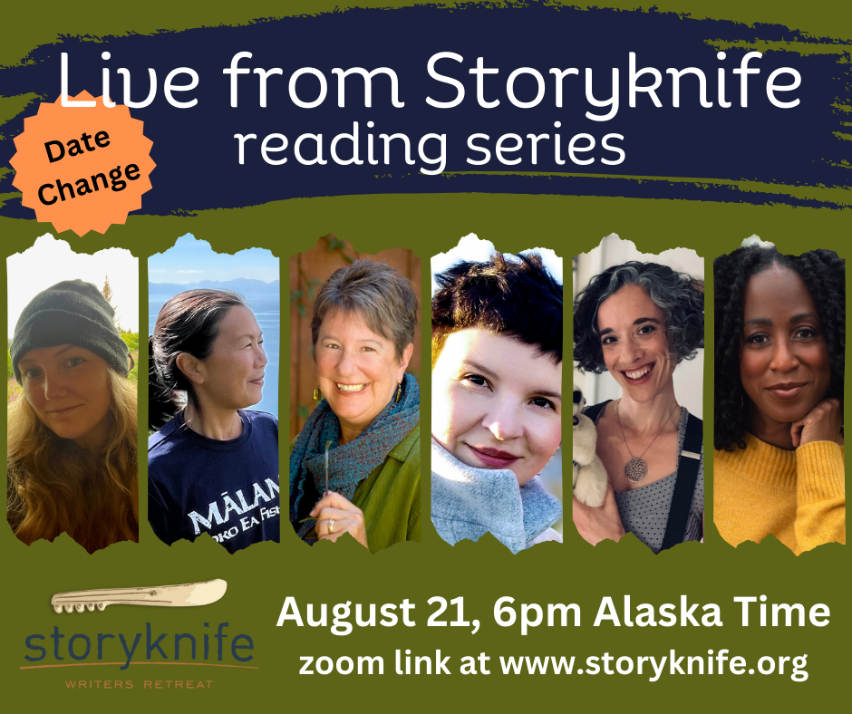 DATE CHANGE! Join us on Wednesday, August 21 at 6pm Alaska time for Live from Storyknife featuring August’s writers in residence. The session will be live on Zoom and the recording will be posted on this page after the reading.